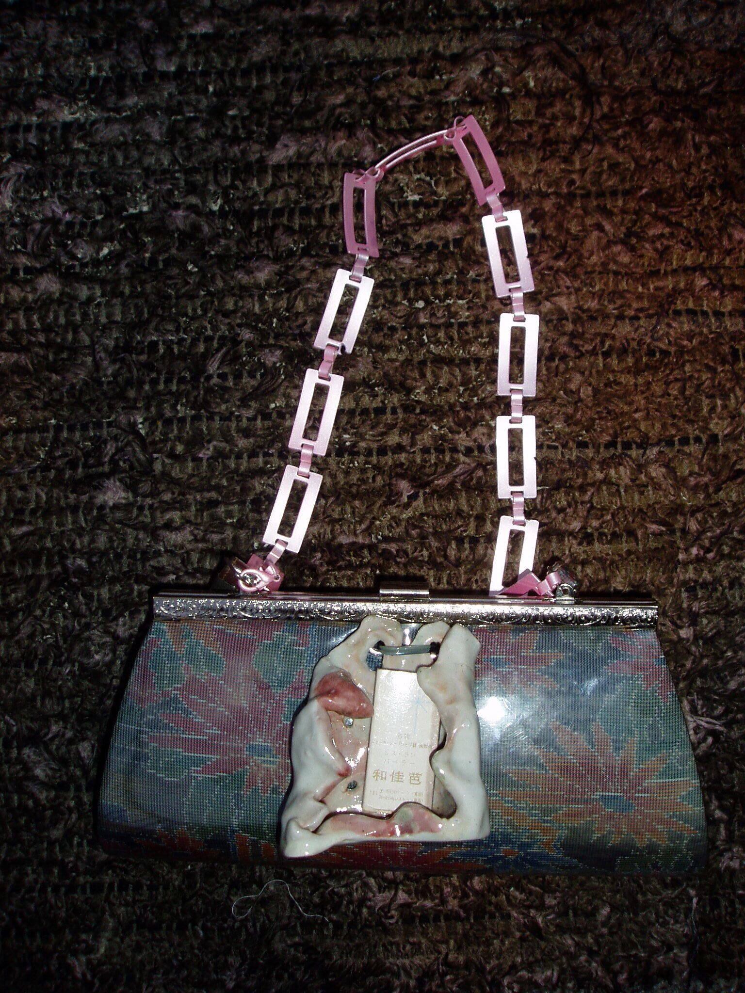 super upcycled kimono handbag with originally made ceramic matchbox holder